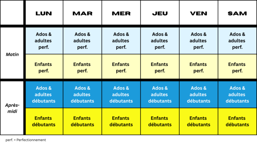 Planning lors des stages (vacances de Pâques et Toussaint)